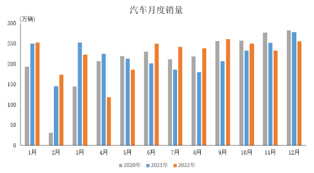 2022年12月,汽車產銷分別完成238.3萬輛和255.6萬輛,產量環比下降0.3%,銷量環比增長9.7%,同比分別下降18.2%和8.4%。