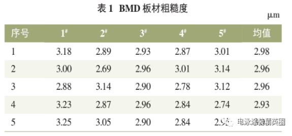 重卡車架采用水洗拋丸板,按Q/JQ16427《BMD板材電泳涂裝技術要求》,BMD板材外觀不應有影響電泳涂裝后的外觀質量缺陷,不應有影響漆膜附著力的氧化膜,表面粗糙度Ra(0.8mm測長)要求均值≤3.0um,最大值≤3.5um,涂油量≤5g/m2。現場對BMD 板材進行外觀檢測,其中粗糙度 Ra 檢測數據見表 1。