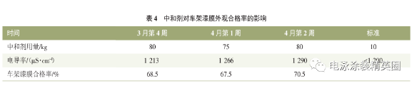 排放超濾液,電泳槽液電導率下降至1100uS/cm,電泳漆膜外觀合格率由70.5%提升至92.0%。