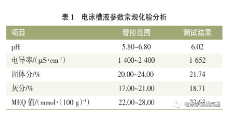 取電泳槽液進行常規參數化驗分析,見表 1。